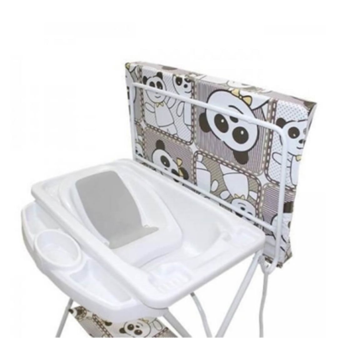 Banheira desmontável; Capacidade máxima da banheira (bebê + água) = 20kg; Banheira 2 em 1: O tanque pode ser utilizado no suporte ou fora; Saboneteira com porta objetos acoplado no suporte da banheira; Mangueira para saída de água do tanque; Tampo-trocador almofadado com proteção lateral; Redutor para banho; Produto Nacional.